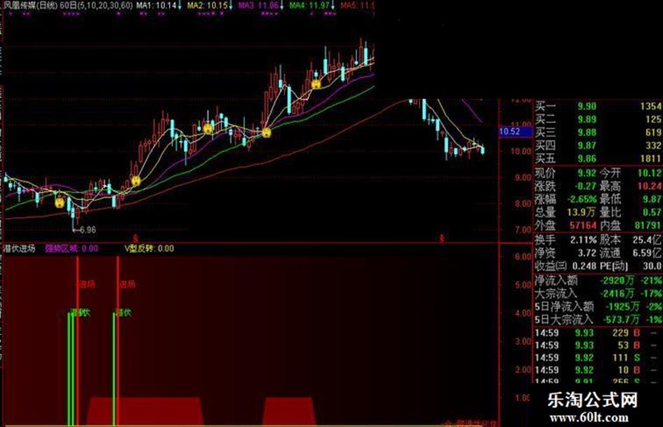进2:=TT>0 AND CROSS(TT,TT1) AND YY AND REF(潜伏,1);