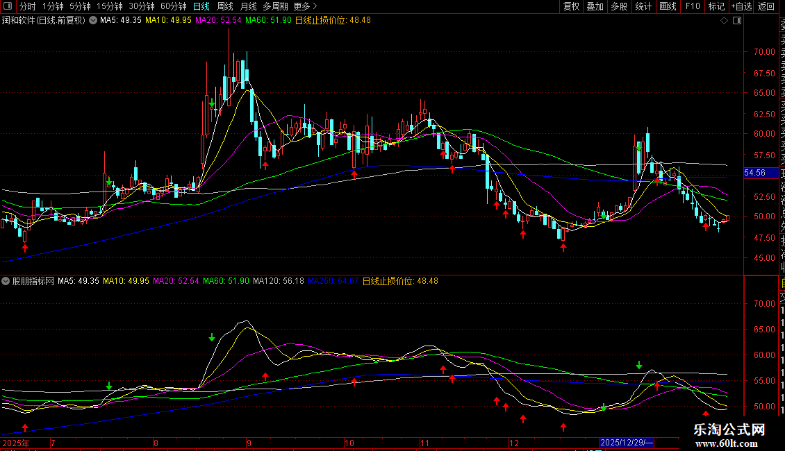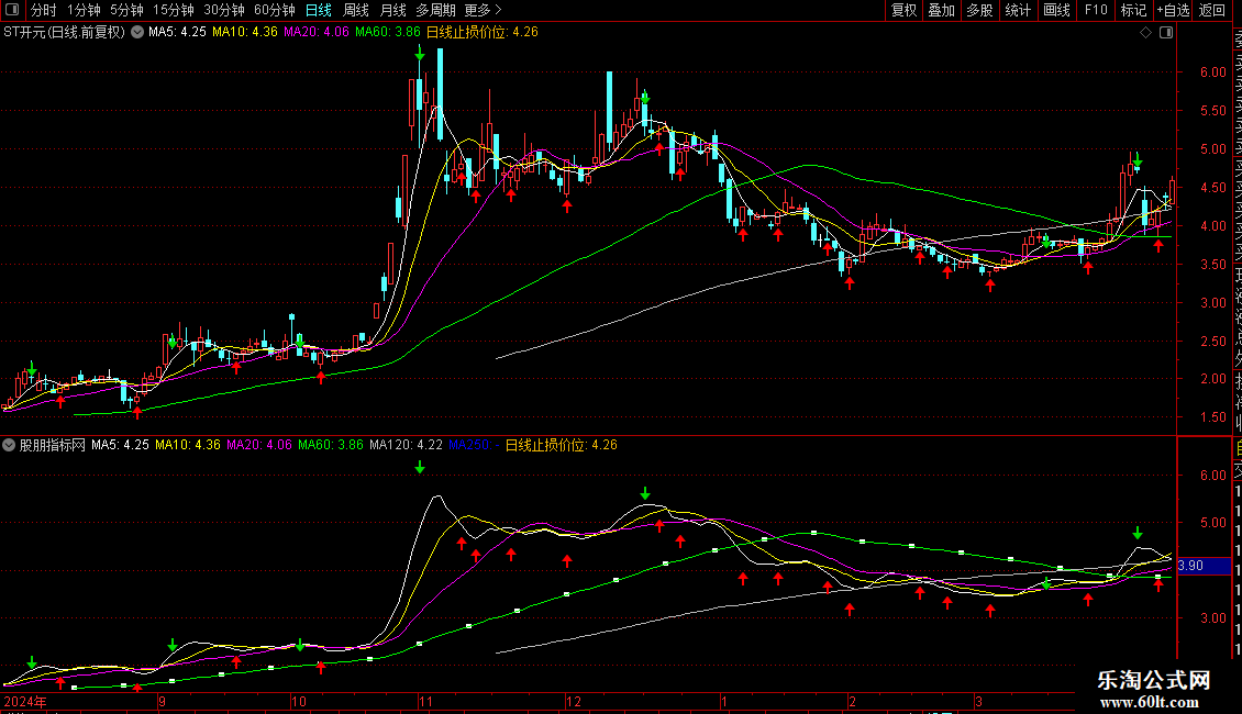 1. 主图显示6条均线:5日、10日、20日、60日、120日、250日收盘价均线。