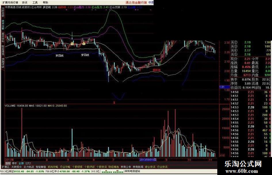 江山压力:多空线+1.7*2*STD(CLOSE,26);