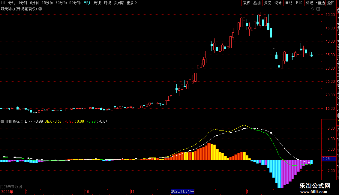 此外,DIFF与DEA之间填充了绿色和白色的带状线,用于直观显示两线的相对位置。