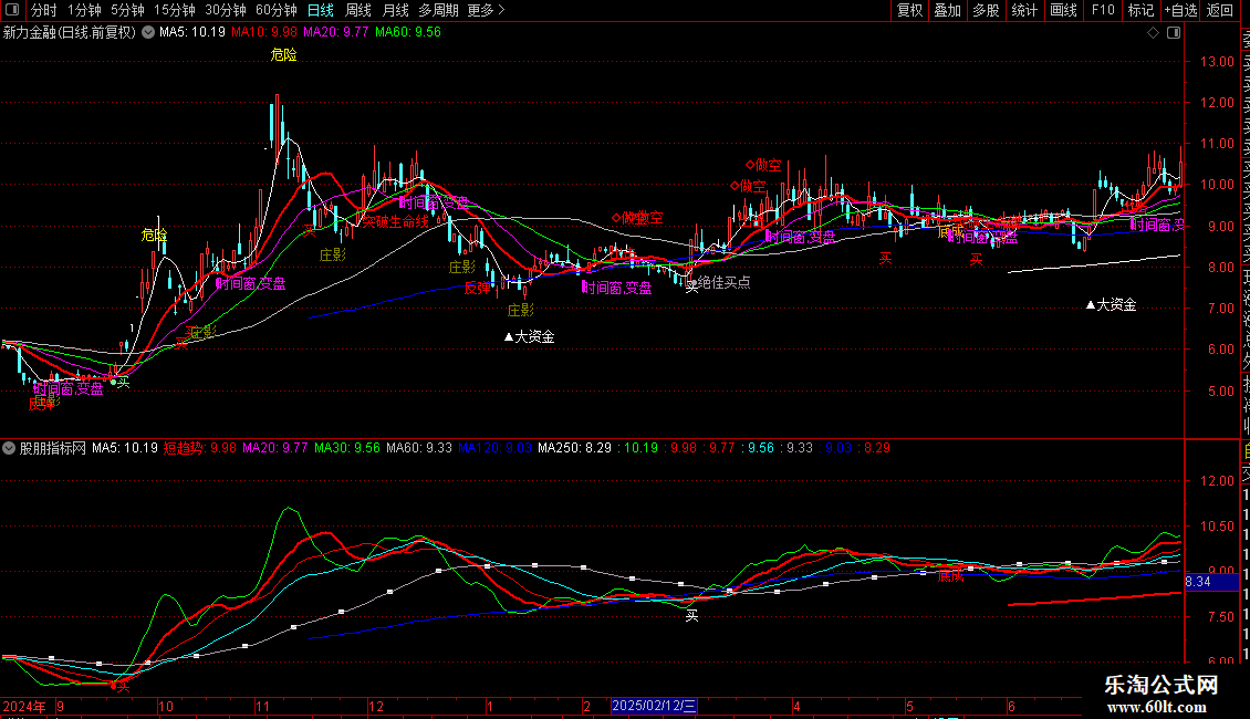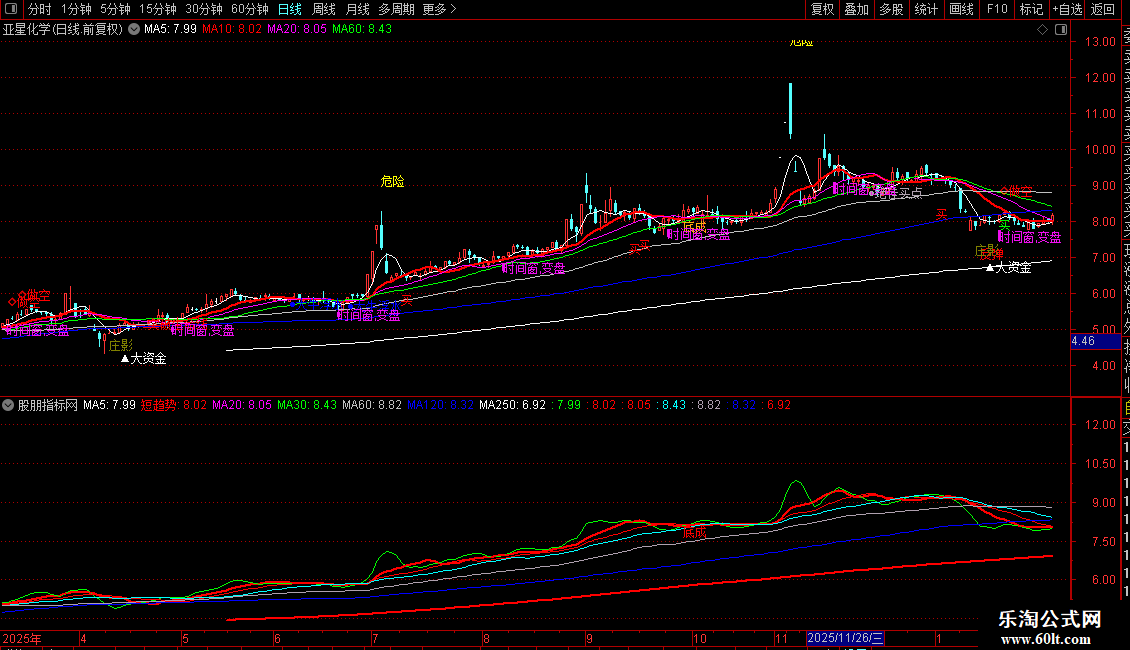 MA20、MA30、MA60、MA120、MA250:分别为20、30、60、120、250日收盘价均线,构成中长期均线系统。