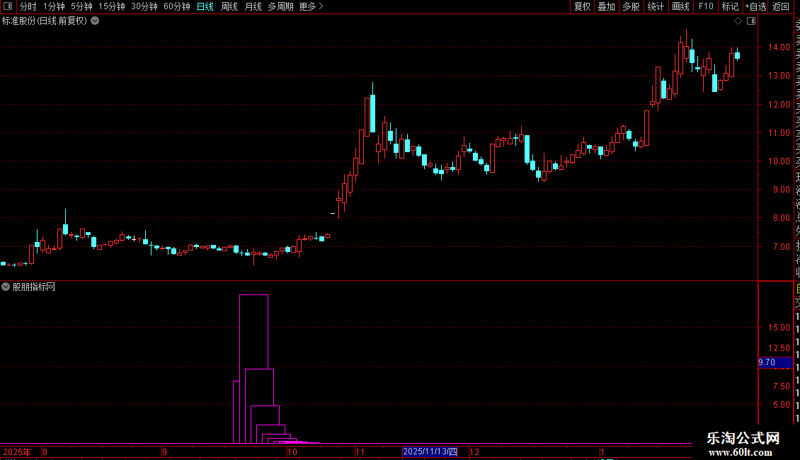 1. 指标为副图指标,显示为彩色柱状线。
