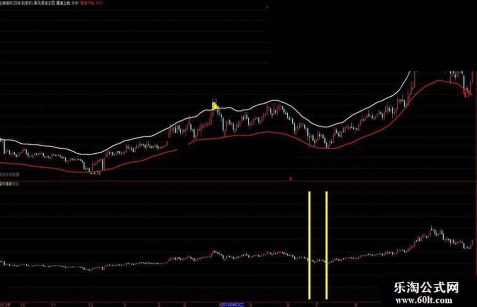 STICKLINE(大底>0 AND C<O ,0,CC,4,0),COLORYELLOW;