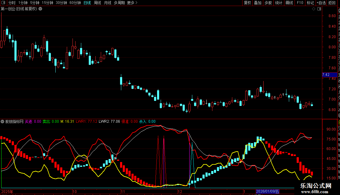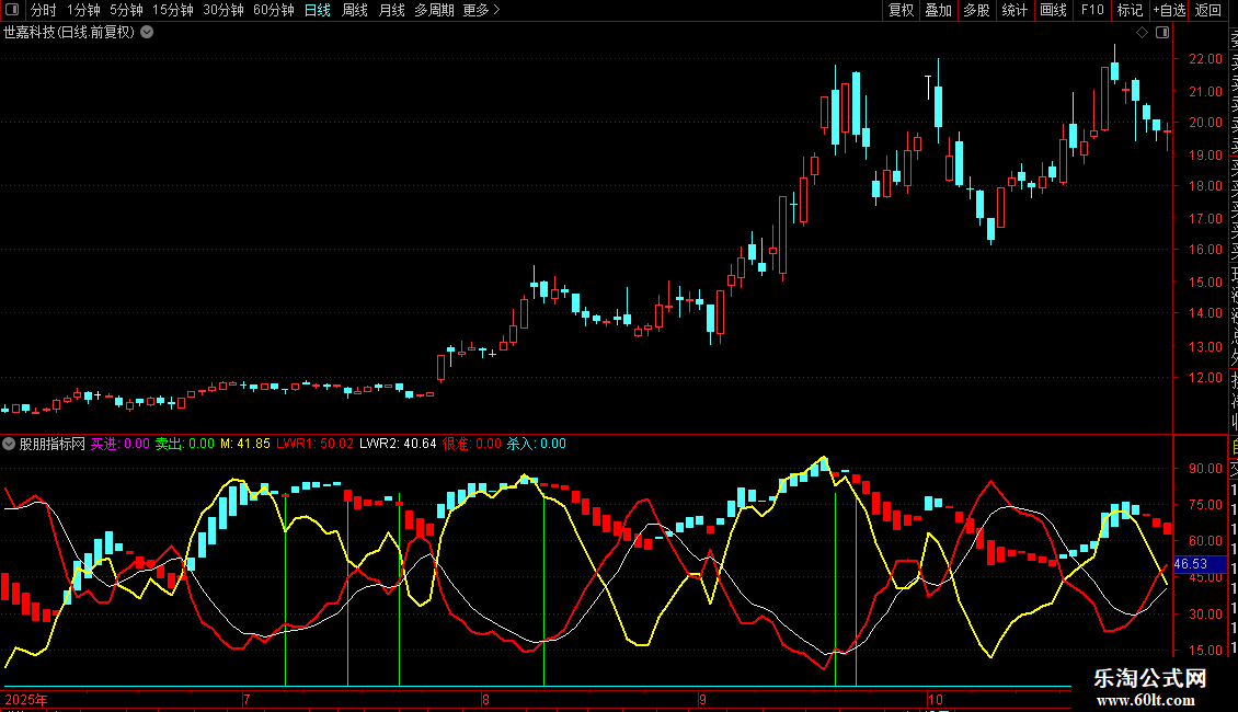 辅助观察:M指标(黄线)的走向可判断短期趋势强弱,LWR指标的金死叉可作为买卖的辅助确认。各指标信号共振时,有效性更高。