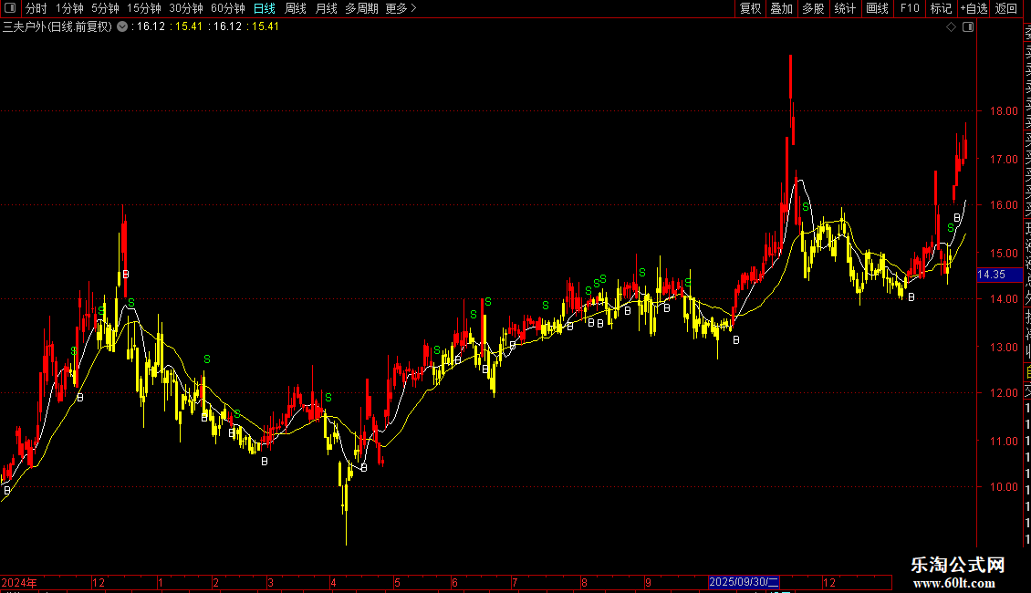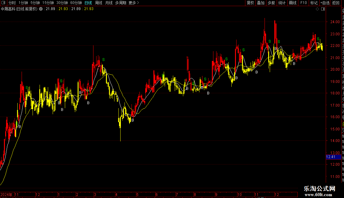 交易信号:关注K线柱颜色由空头色(白/黄)转为多头色(红)时,并伴随出现“B”买入信号;反之,当K线柱颜色由红转白/黄,并出现“S”卖出信号时,可考虑离场或做空。