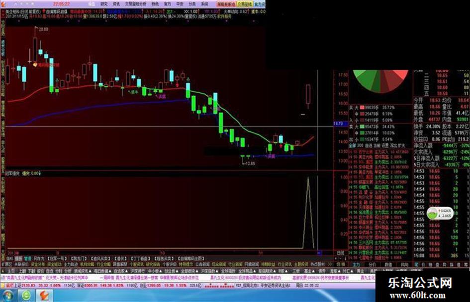 短线低盘:=(L-短底)/(短顶-短底)*100000,LINETHICK0,COLORRED;