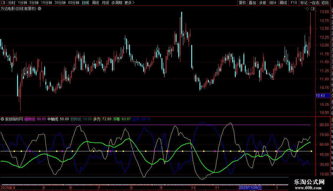 黄线:代表多方的能量值,其数值大小以50作为平衡值,数值越大说明该种能量越大,反之,则越小。
