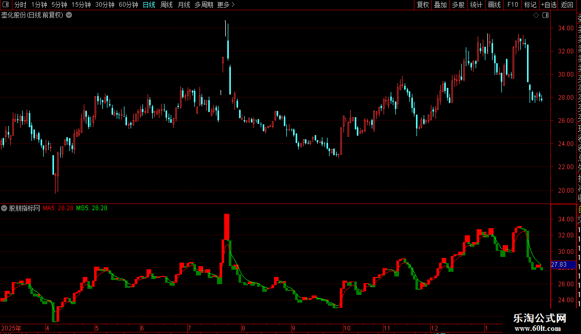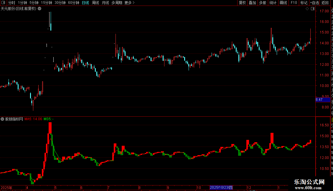 指标为宝塔线指标,包含宝塔线和5日均线。