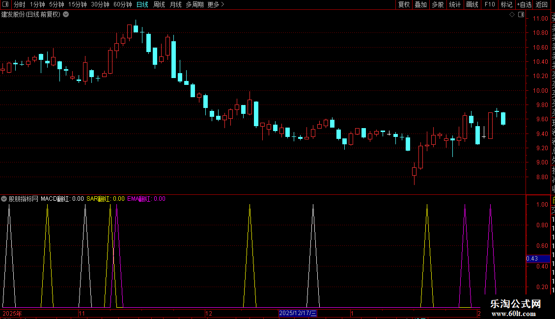 2、SAR指标,股价重新回到SRA指标以上,SAR转向到股价之下运行即为翻红;