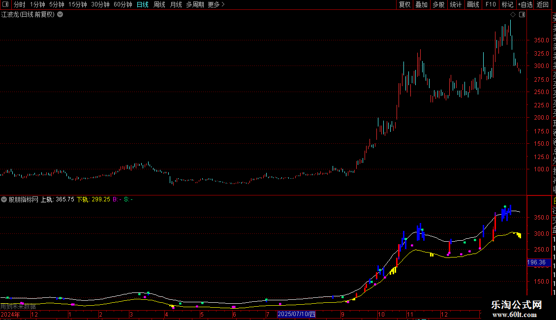 2. 特殊K线标记用于突出显示突破轨道和涨停的K线。