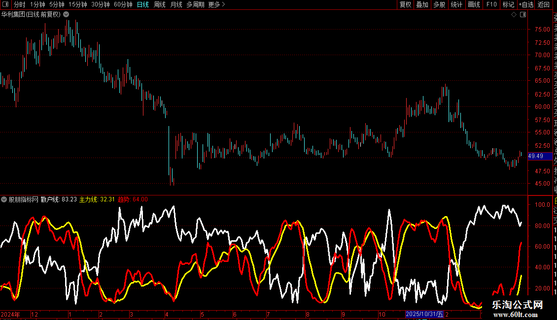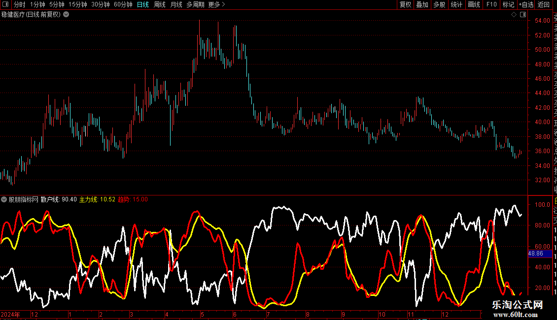 2. 主力线与散户线形成对比:主力线上穿散户线可能预示主力进场。