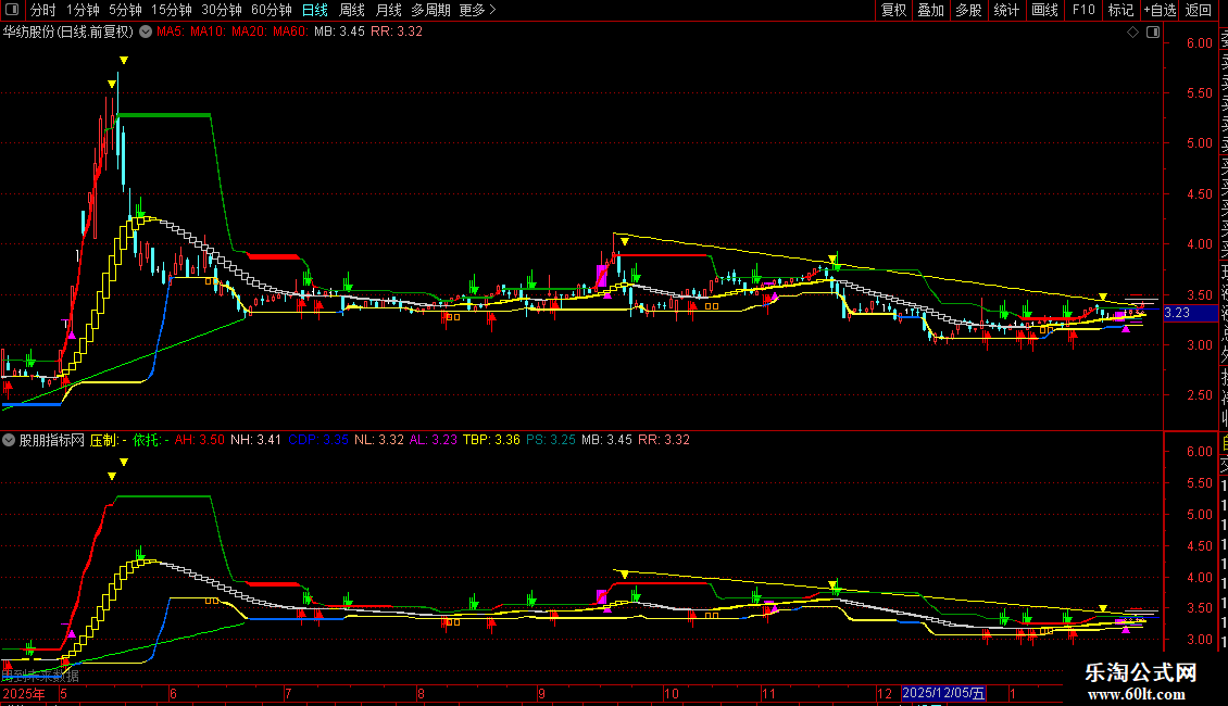 压制:DRAWLINE(C=HHV(C,60),HHV(H,3),C=HHV(C,30) AND C<HHV(C,45),HHV(HIGH,1),P),COLORYELLOW;