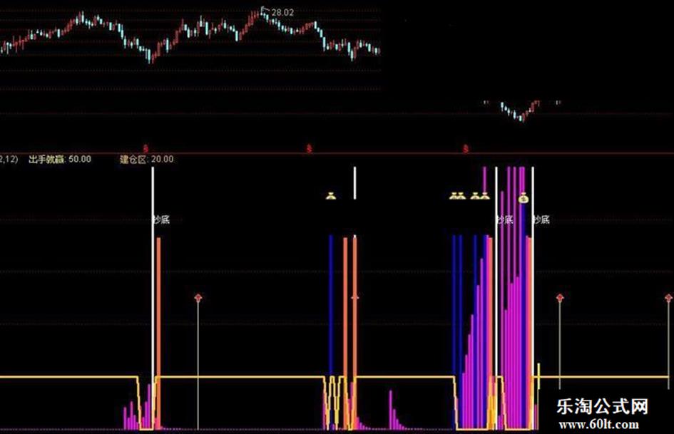 DRAWTEXT(CROSS(底部吸筹指标,-24),80,'抄底'),COLORWHITE;
