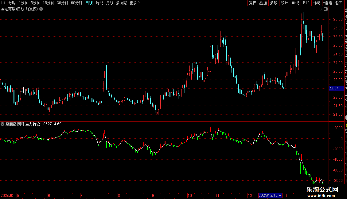 STICKLINE(DT<0,主力持仓+DT,主力持仓,1,0),COLOR00FF00;