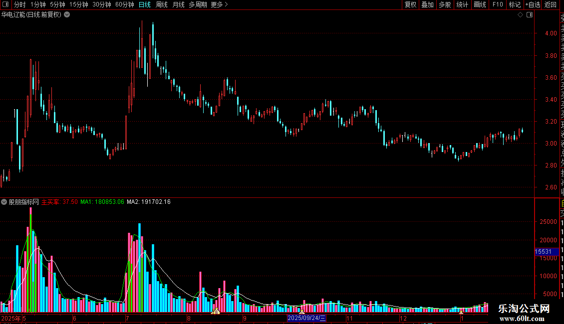MA2:EXPMEMA(VOL,10),COLORWHITE,LINETHICK1;