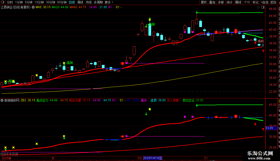 ZGEND:=CONST((高点压力+低点支撑)/2);