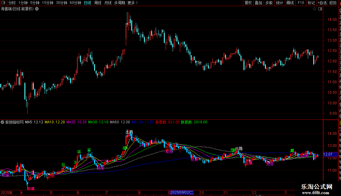 DRAWTEXT(CROSS(动能趋势线,87.5),HIGH*1.02,'出局'),COLORWHITE;