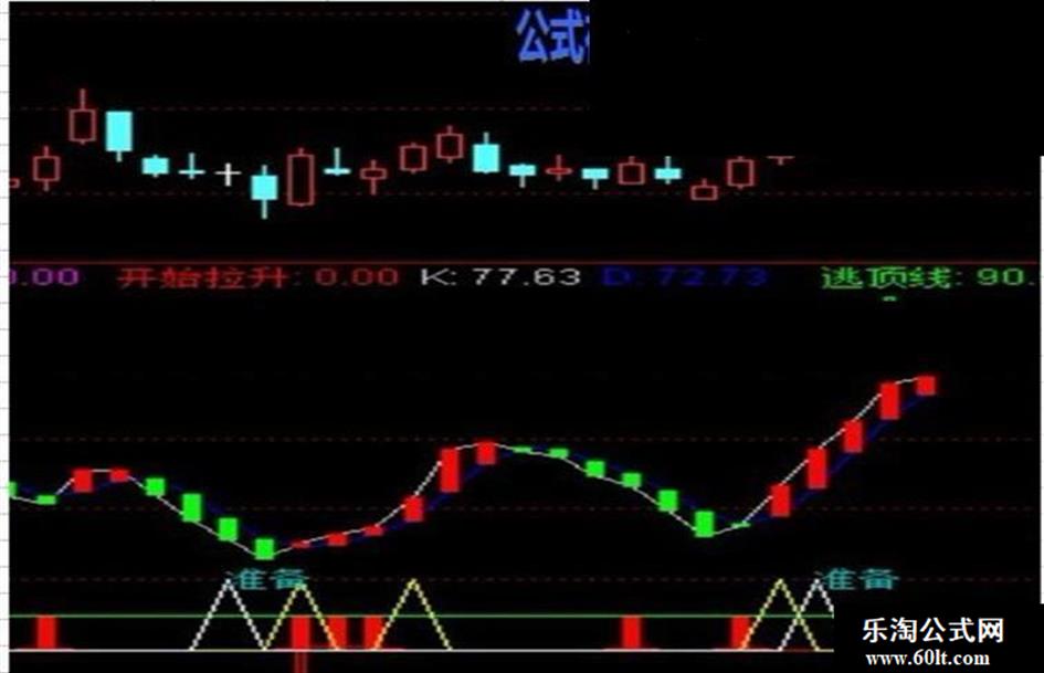 开始拉升:STICKLINE(地>天 AND 地<0,10,0,1,0)=1,COLORRED;