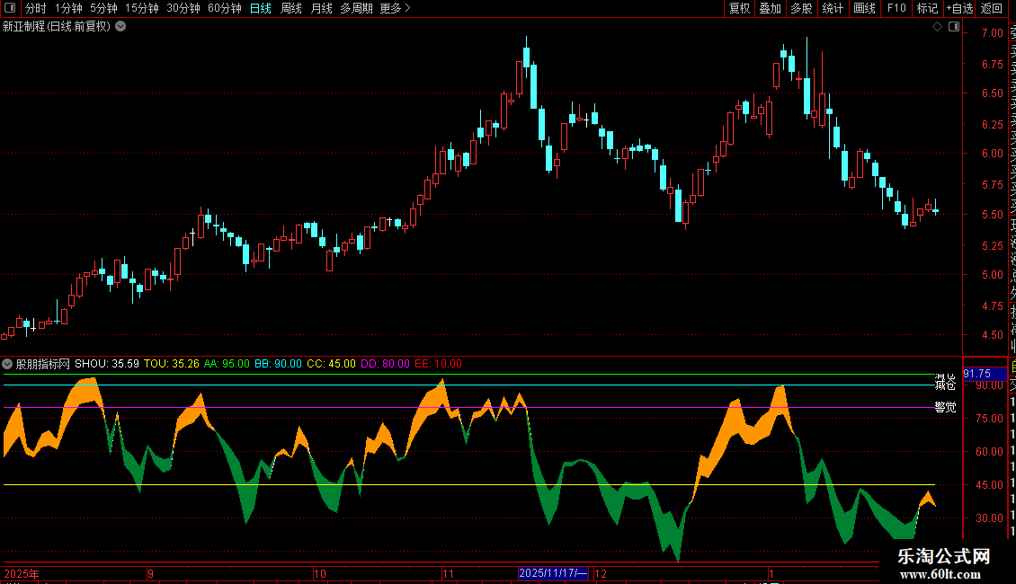 SHOU:SMA(MAX(CLOSE-SHI,0),N1,1)/SMA(ABS(CLOSE-SHI),N1,1)*100;