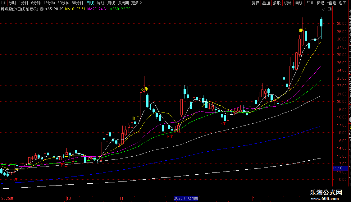 DRAWTEXT(CROSS(J,REF(J+0.01,1)) AND X AND J<20,LOW*0.95,'下注'),COLORRED;