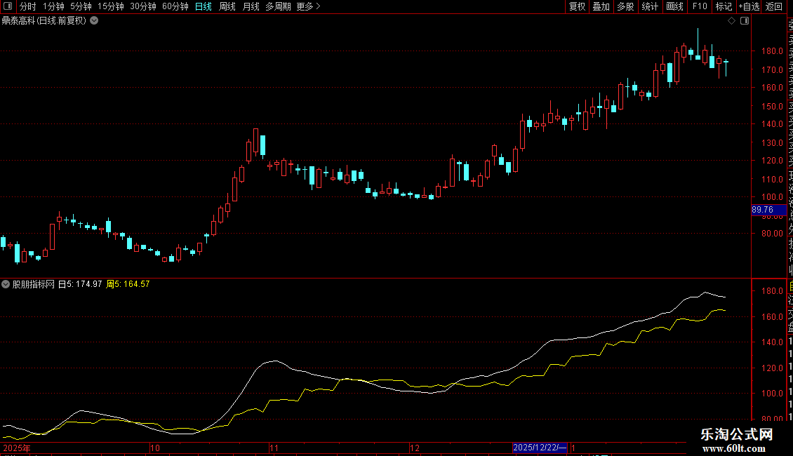 周5:(REF(CLOSE,T)+REF(CLOSE,T1)+REF(CLOSE,T2)+REF(CLOSE,T3)+CLOSE)/5;