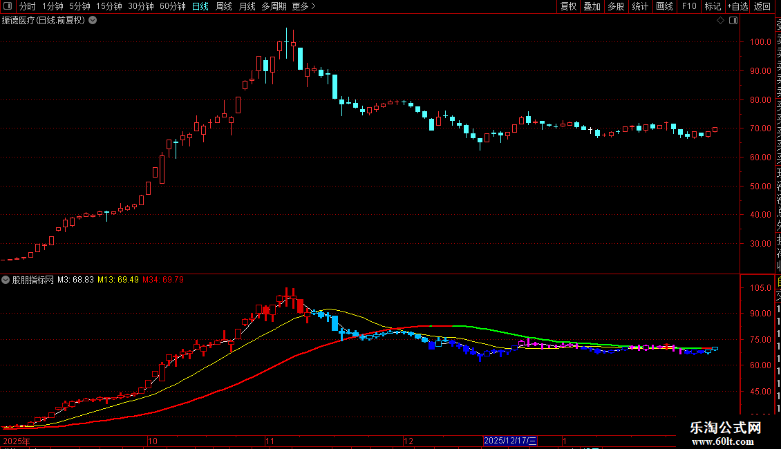 STICKLINE(M3>=M13 AND M34>=REF(M34,1) AND C>=O ,O ,C ,3 ,1 ),COLOR0000DD;