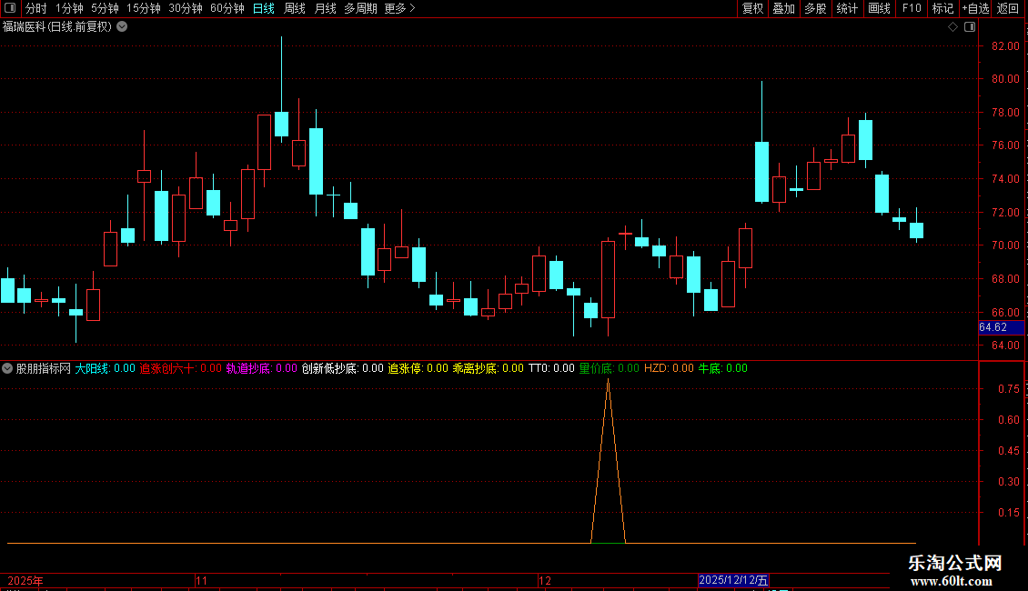 追涨创六十:IF(V1>60 AND V2,0.8,0),COLORRED;