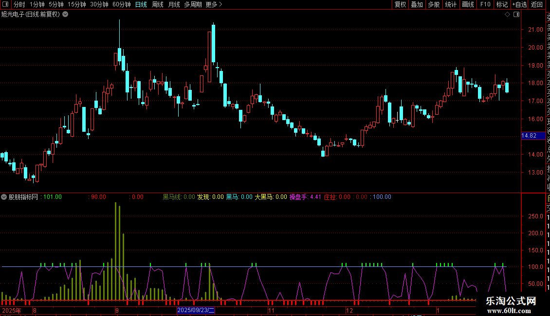 {DRAWTEXT(发现>0,25,'短线黑马2.5%')COLORCC99FF;