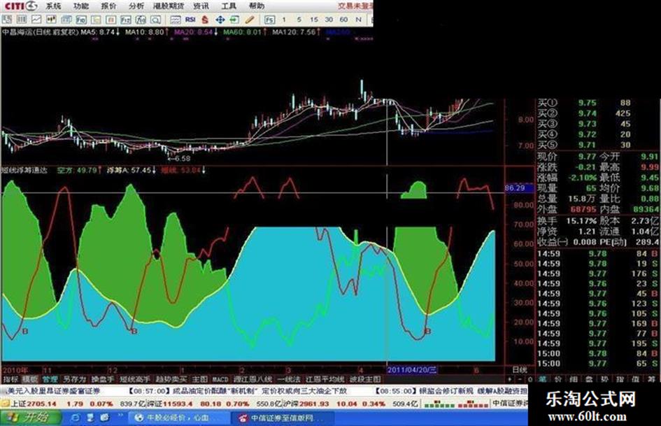 浮筹A:EMA(B,4),COLORYELLOW,LINETHICK2;