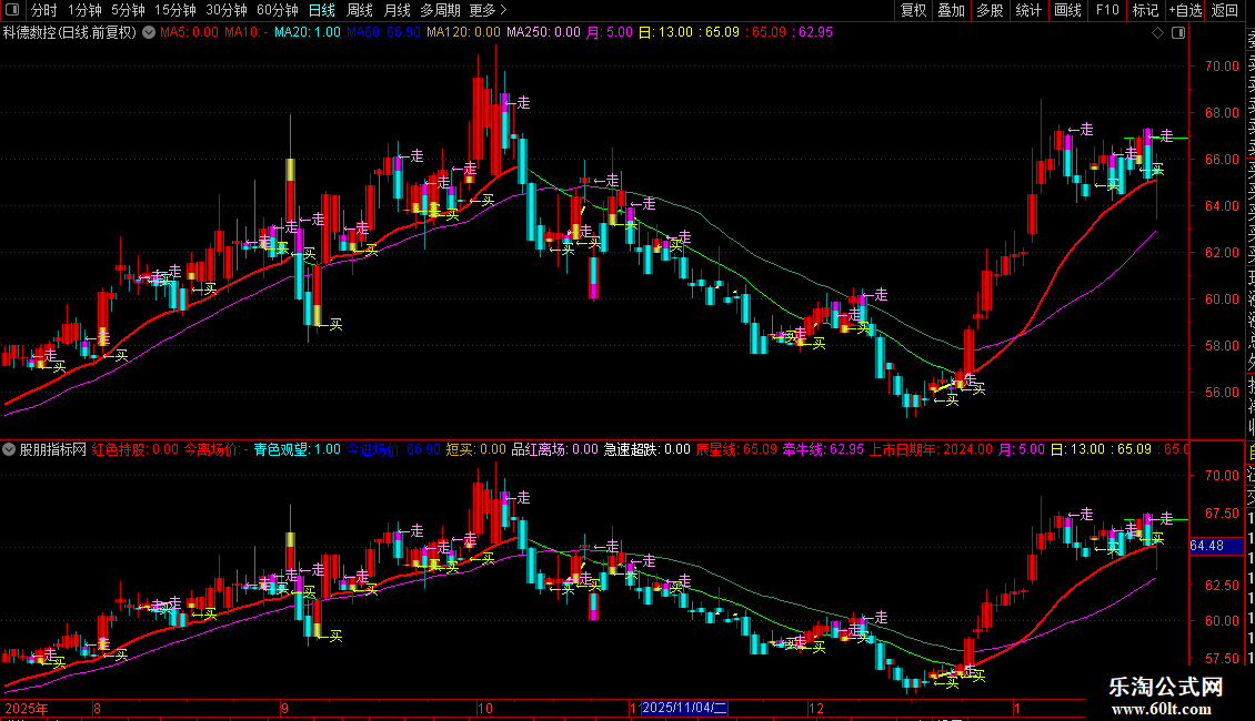 DRAWTEXT(品红离场,REF(CLOSE,1)+0.1,'←走'),COLORFF99FF;