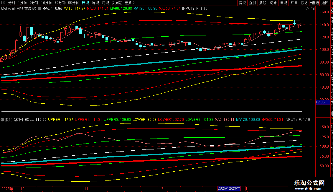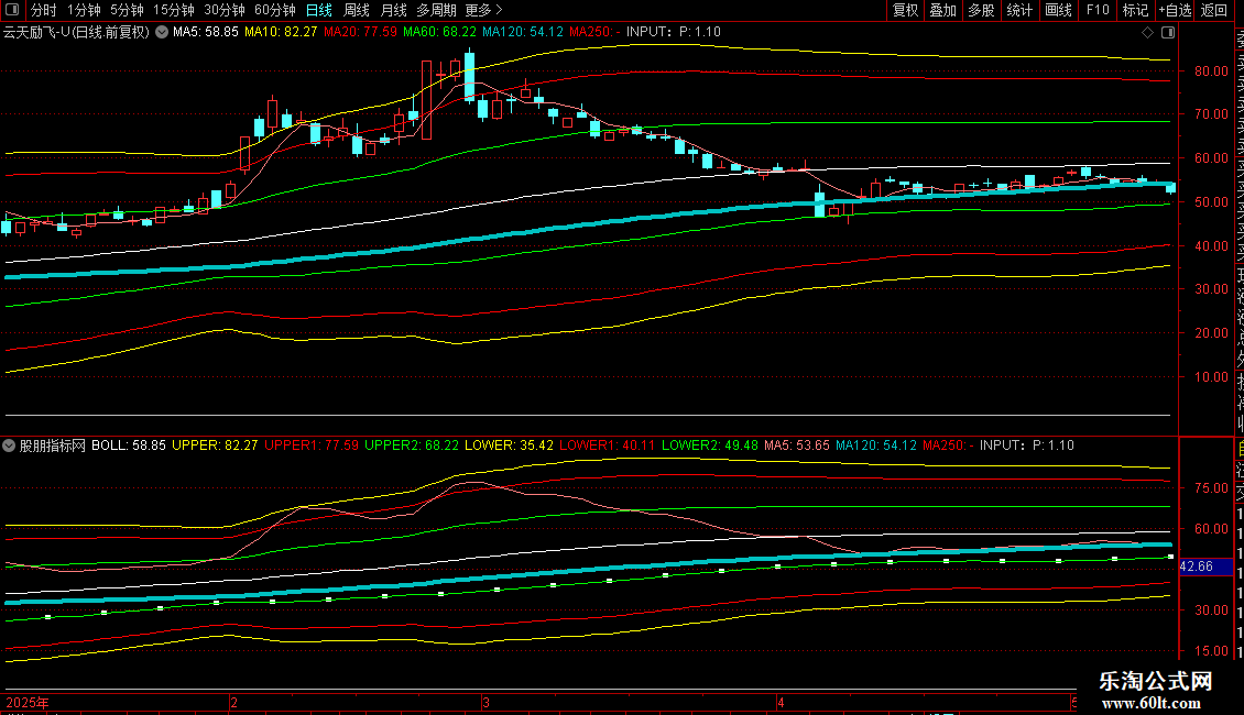 UPPER:BOLL+2.5*STD(C,P)COLORYELLOW;