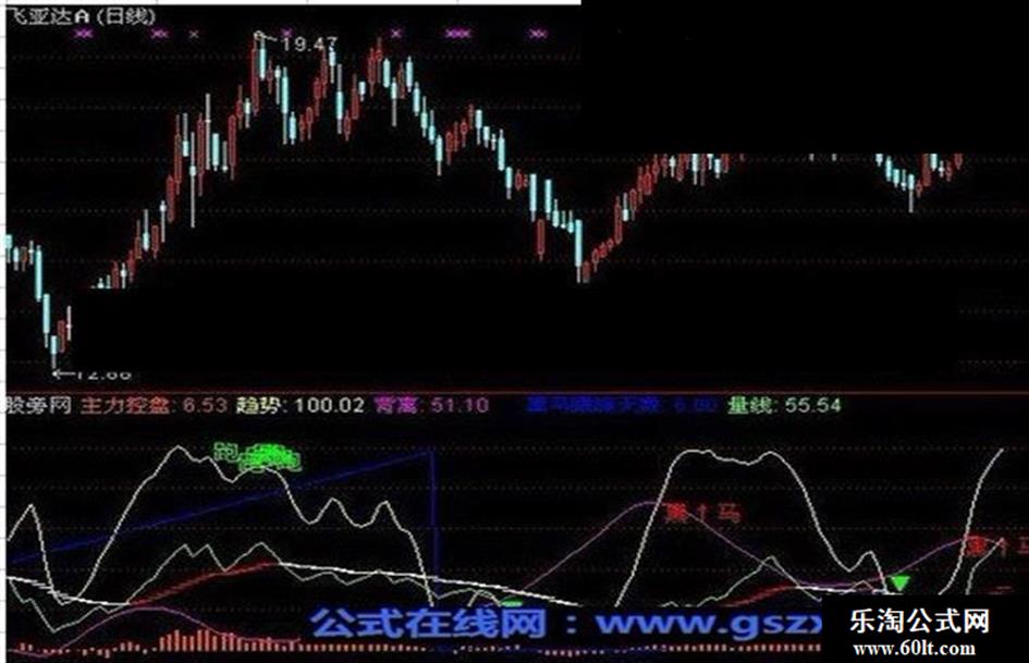 DRAWTEXT((CROSS(趋势,背离)),背离,'黑↑马'),COLORRED;