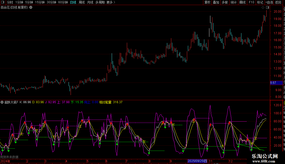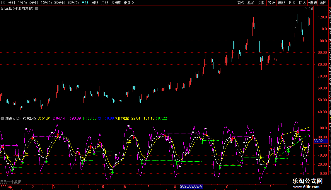 相对能量:(OBV-下)/(上-下)*100,COLORYELLOW,NODRAW;