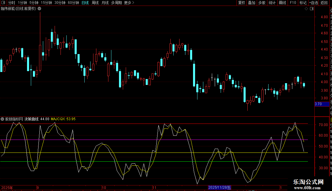 为了避免单一指标过于主观的信息,因此,融合了数十种技术指标,将其所有指标信号组合成“决策曲线”,这条“决策曲线”属于所有指标共同对当前股价波动的见解,从逻辑上说,它是一条最客观的指标曲线。