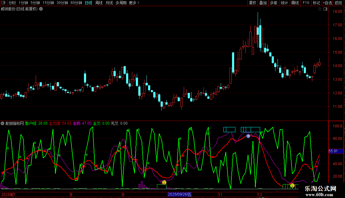 DRAWTEXT(死叉,散户线,'☆'),COLOR00F300;