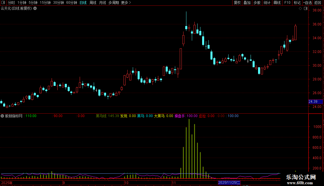 {DRAWTEXT(发现>0,25,'短线黑马2.5%')COLORCC99FF;