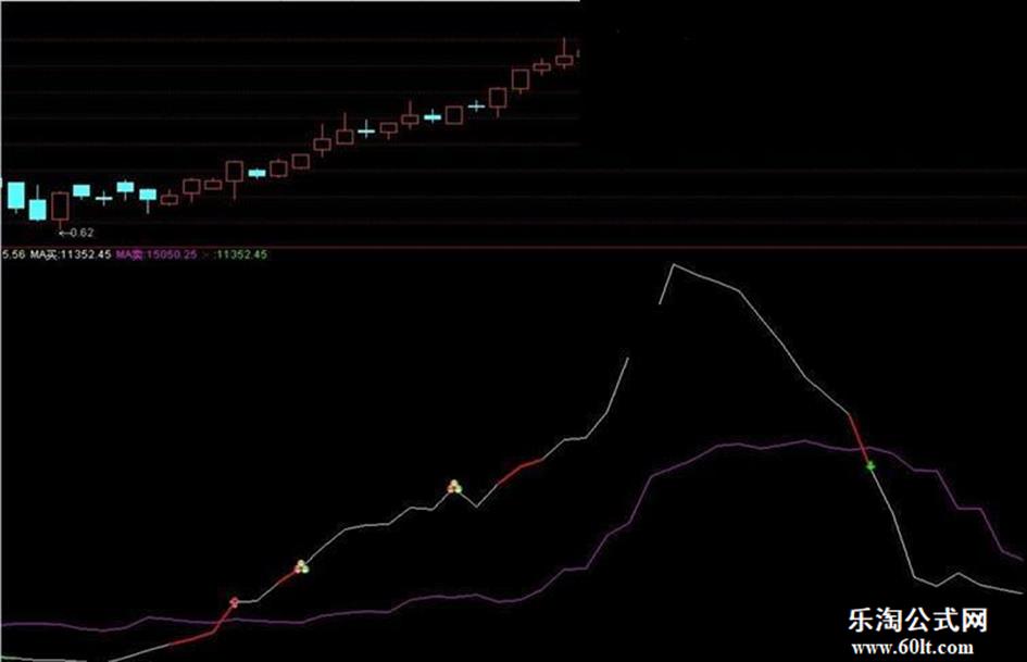 卖:=-IF(CLOSE>OPEN,0-VAR1*((HIGH-CLOSE)+(OPEN-LOW)),IF(CLOSE<OPEN,0-VAR1*(HIGH-LOW),0-VOL/2)),COLOR00FF00,POINTDOT;