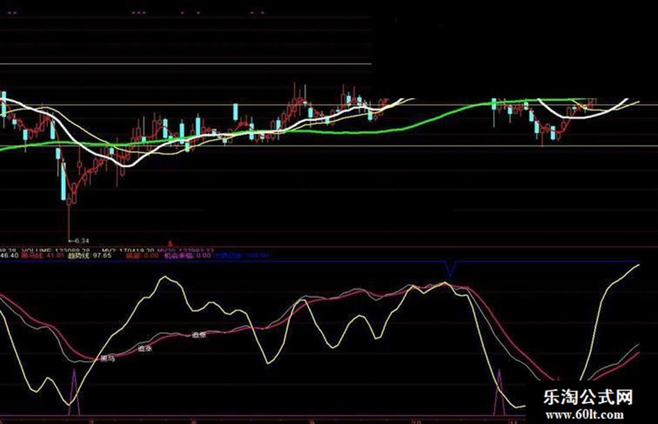 DRAWTEXT(CROSS(黑码线,A5)AND 趋势线<80,黑码线,'追涨');