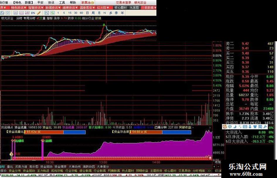 分时均价线:=SUM(C*V,240)/SUM(V,240),COLORYELLOW,LINETHICK2;