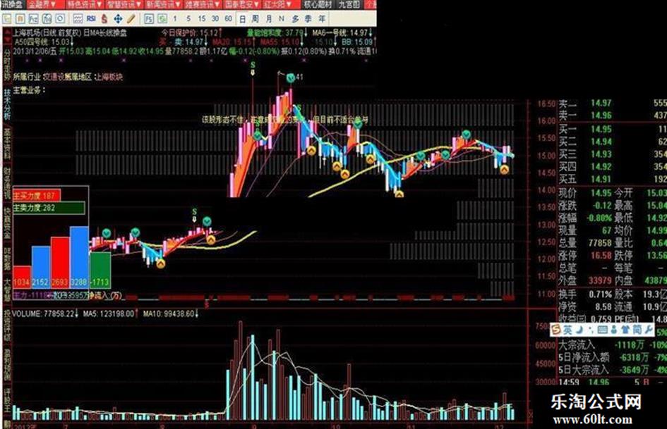 IF(解盘13=1,'该股形态不佳,注意成交量的变化,但目前不适合参与',