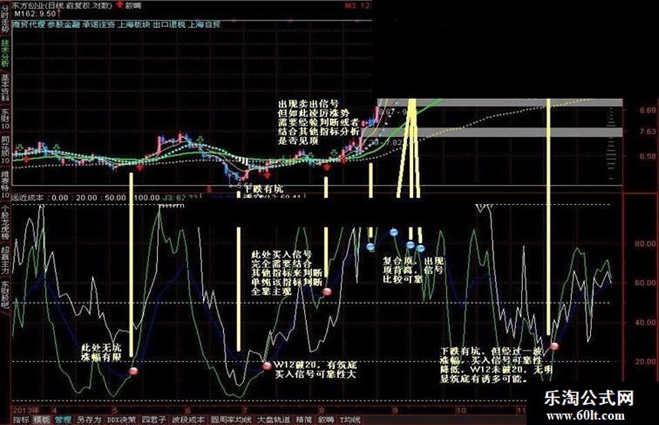 副图是根据远近成本的均值所产生的买点和卖点提示。结合主图根据个人的看盘及操作经验做出买卖的主观分析和判断。