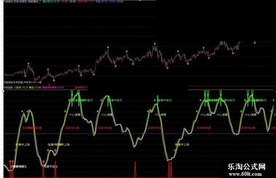 DRAWTEXT(CROSS(新庄,小股民) AND 新庄>75,80,'憧憬中毁灭'),COLORGREEN ,LINETHICK7 ;