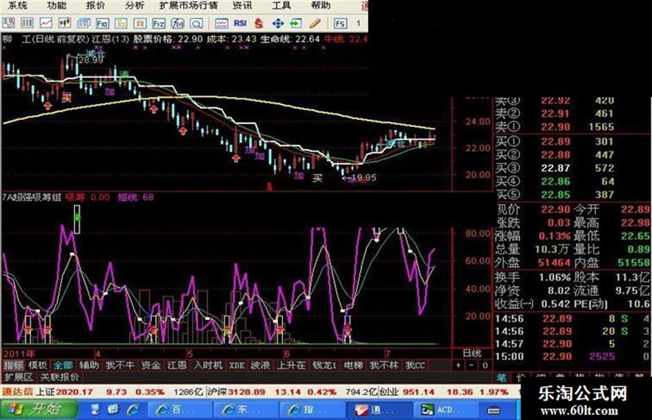 不涨二次全仓:IF(CROSS(J,REF(J+0.01,1)) AND X AND J<10 AND C>REF(C,1),24,0),COLORBLUE;