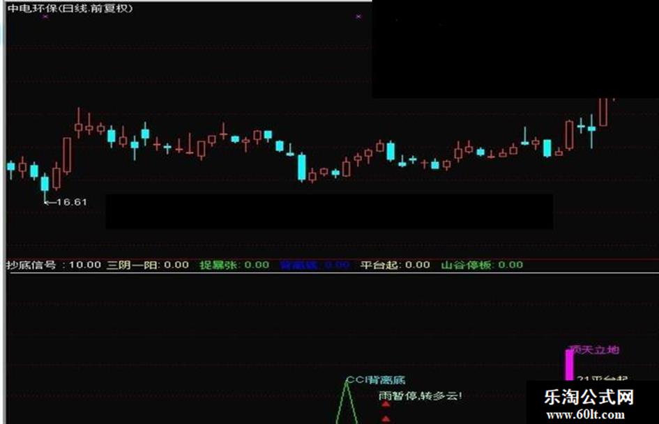 拨云见日:STICKLINE((LAST(C<O,6,3) AND LAST(C>O,2,0)) OR (LAST(C<O,6,3) AND C>O AND REF(C,1)<REF(O,1) AND REF(C,2)>REF(O,2)),4,0,2,0),COLORMAGENTA;