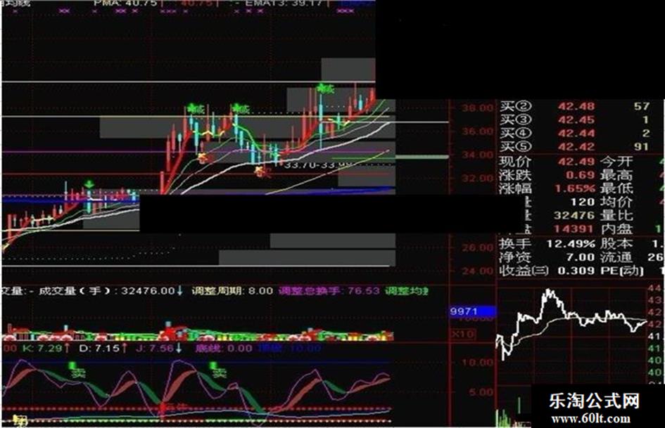 黄金分割线:MA(CLOSE,60),COLORYELLOW,LINETHICK2;