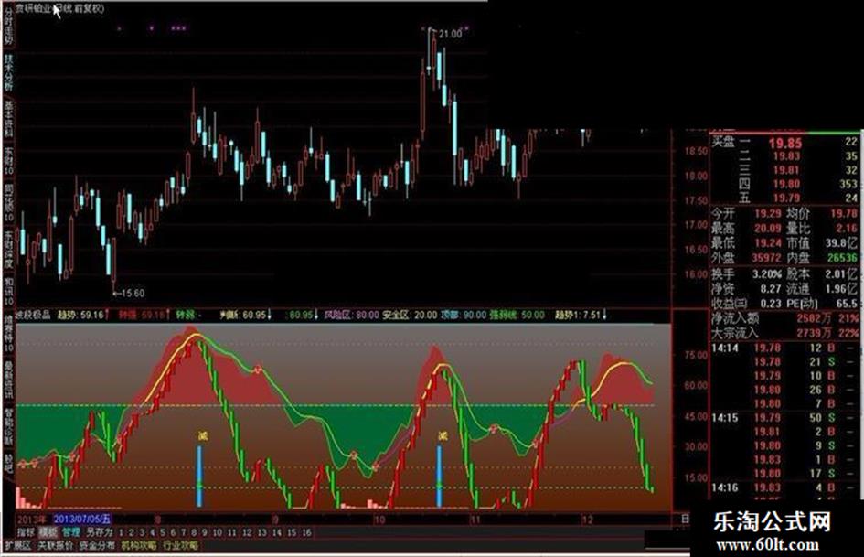 IF(判断>50 AND 趋势<判断,判断,DRAWNULL),COLORGREEN,LINETHICK2;