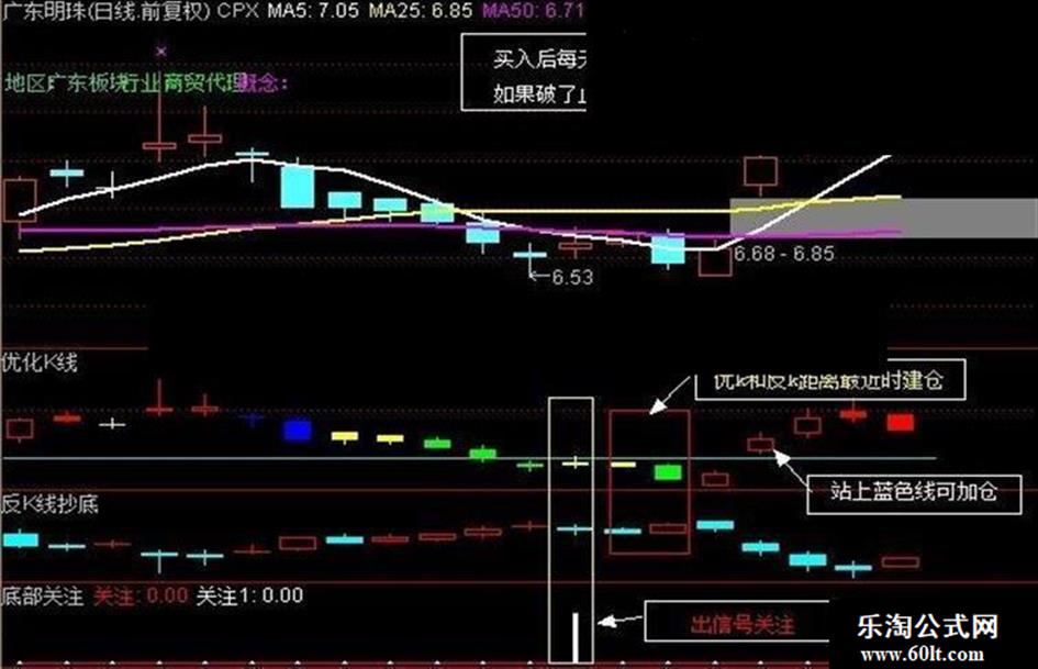 2.底部关注出现白柱信号后,不要急着买,等优化k线的低点和反k线的高点靠近的时候在介入;